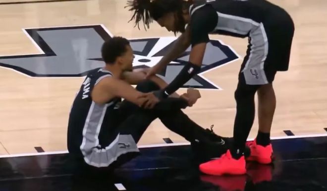 第四節(jié)剛開始,文班亞馬爭搶籃板,落地時不小心讓膝蓋過度伸展,于是直接退出了比賽。前兩天,丹佛掘金隊的核心球員約基奇也是膝蓋過度伸展,直接退賽,至少需要休戰(zhàn)4周。