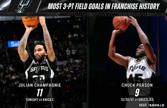 此役,首發(fā)出戰(zhàn)36分10秒的尚帕尼大發(fā)神威,全場(chǎng)17投11中,三分17中11,3罰3中,狂轟36分6籃板1蓋帽,正負(fù)值+27冠絕全場(chǎng)!其中,11記三分刷新馬刺隊(duì)史紀(jì)錄,此前紀(jì)錄為查克珀森所保持的9記三分。
