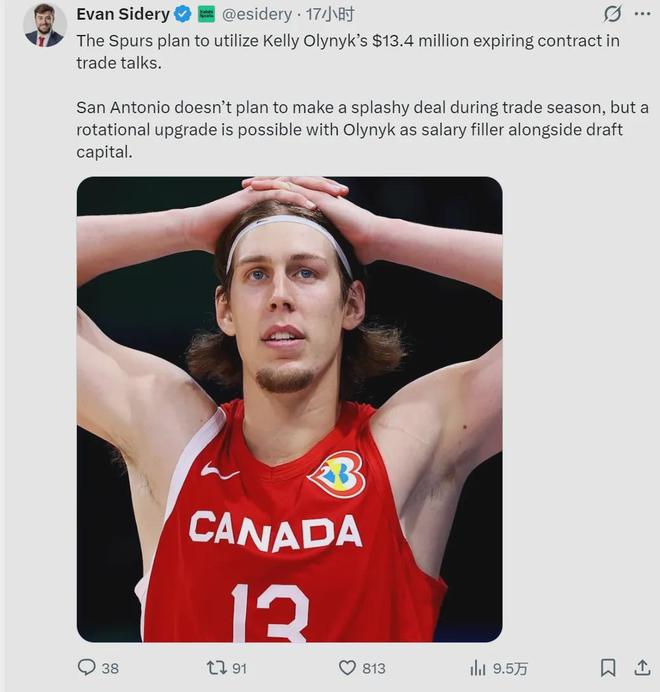 據(jù)NBA記者Evan Sidery報(bào)道,馬刺本賽季并不打算進(jìn)行大的交易,而是準(zhǔn)備利用奧利尼克的到期合同補(bǔ)齊球隊(duì)短板。奧利尼克的合同還剩1年1345萬美元,對(duì)于想在2026年夏天清理空間的球隊(duì)來說,這份合同有一定的交易價(jià)值。