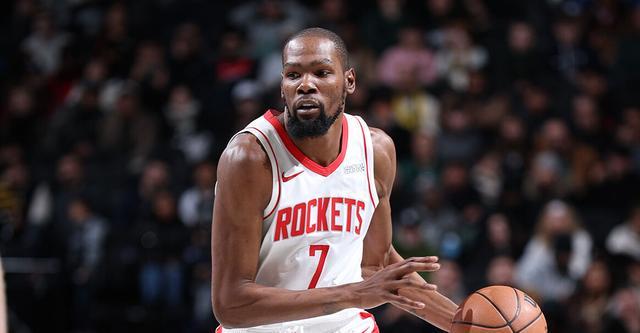 本場比賽,火箭主將凱文-杜蘭特出戰(zhàn)37分鐘,15投8中,得到22分5籃板11助攻。