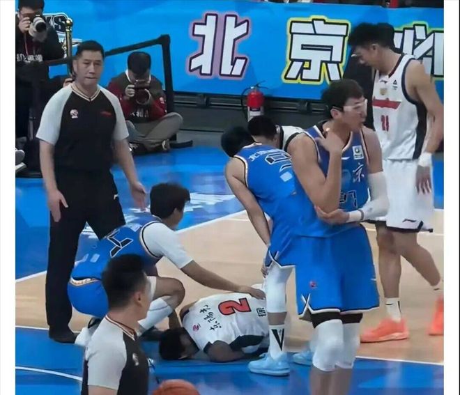 徐杰是第二節(jié)還是4分多鐘時,被周琦意外撞倒的,作為大中鋒,周琦體重巨大,撞到徐杰的膝蓋和腳踝,讓后者痛苦不堪,隨后倒地不起。在徐杰受傷后,北京隊立馬停止了進攻,有2位北京球員更是立馬采取行動,對徐杰進行關心。首先是作為前隊友的趙睿,他看到徐杰受傷,指了指后,將倒地的周琦拉起,然后蹲下來慰問徐杰的情況,并緊急招手呼叫隊醫(yī)過來。