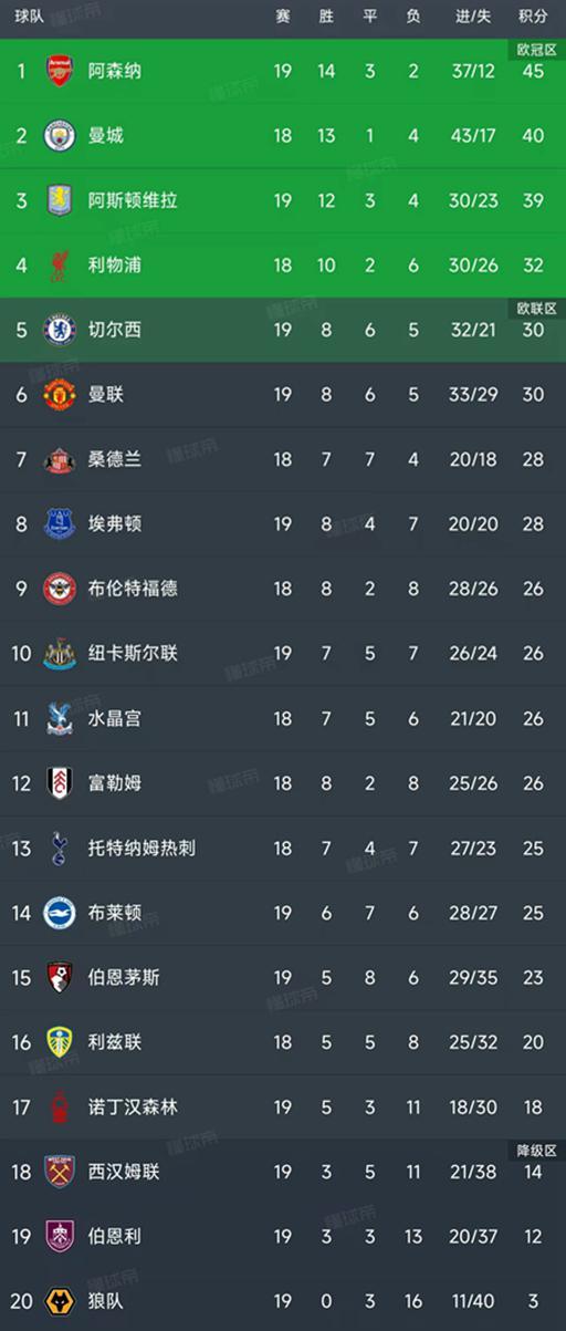 英超第19輪結(jié)束了6場(chǎng)比賽,最新積分榜如下!